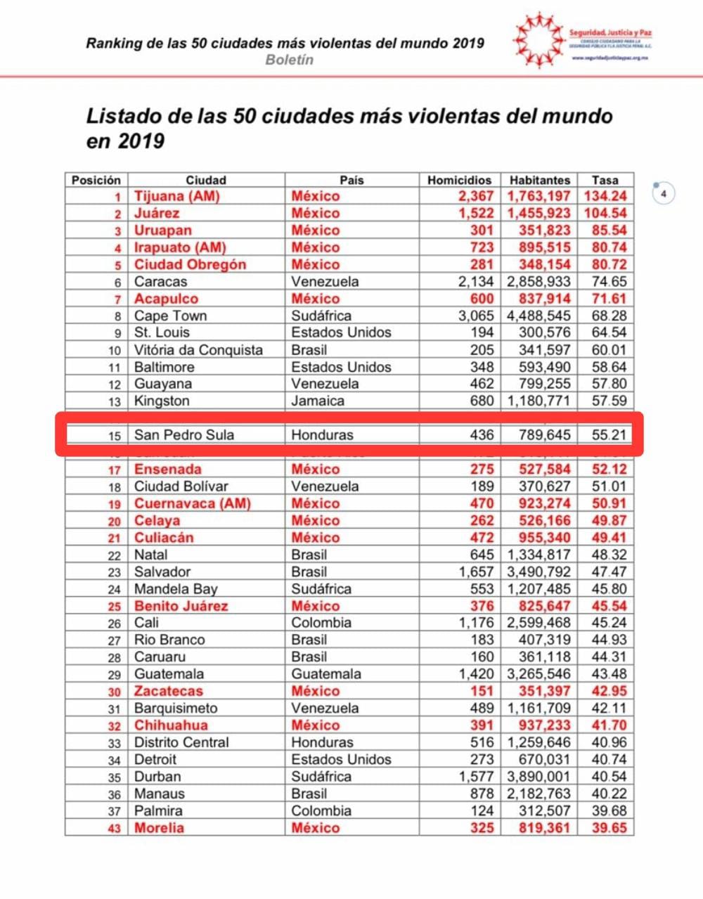 Hace cuatro años, la ciudad de San Pedro Sula se colocaba en el puesto número 15, de las ciudades mas violentas a nivel mundial, según el Consejo Para la Seguridad Pública y Justicia Penal; Ente que fue creado para generar estrategias y fortalecer la seguridad en los países denominados con mayor incidencia de violencia.