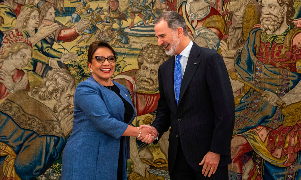 La presidenta de Honduras, Xiomara Castro, como parte de su vista a España se reunió con el rey Felipe VI.