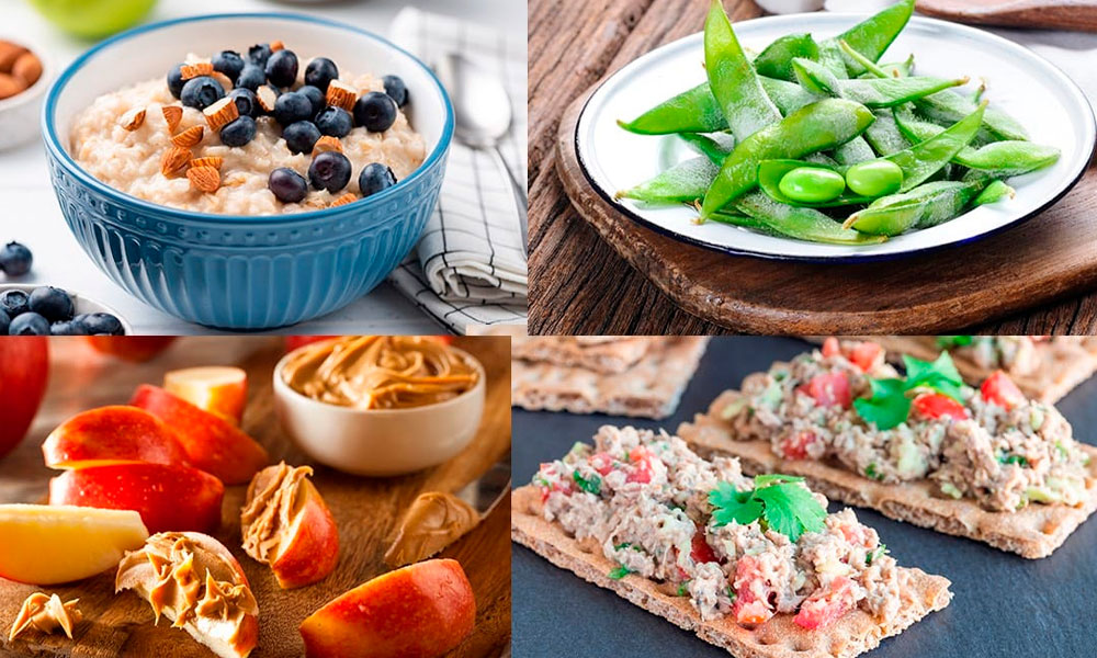 - Edamames ((vainas de soya/soja) o porotos de soja. Coloca 1 taza de soya/soja en agua hirviendo hasta que esté tierna. Espolvorea con un poco de sal o salsa de soya/soja. Son una gran fuente de proteína a base de plantas y son divertidos de comer.