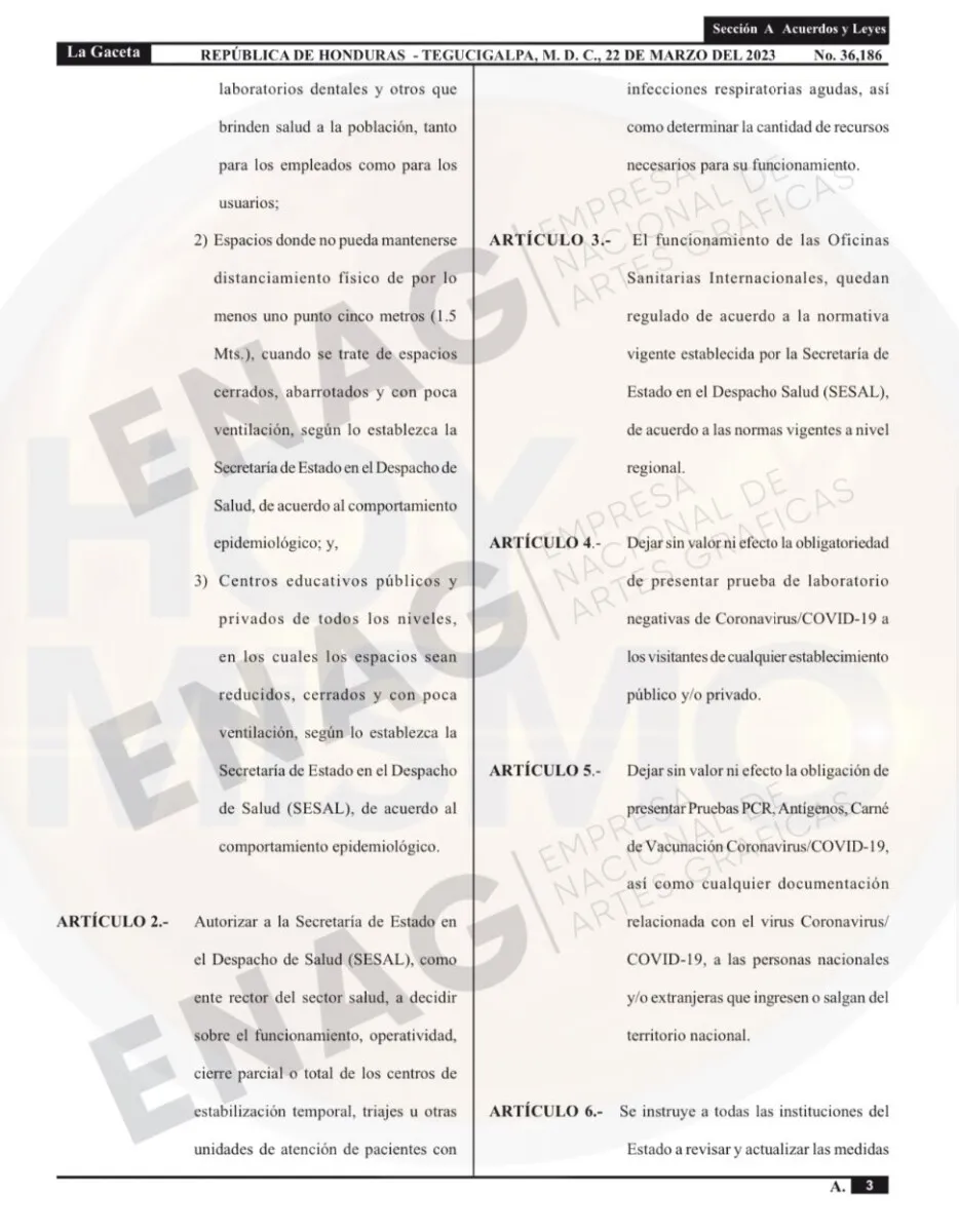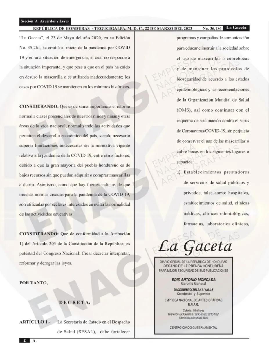 El uso de la mascarilla en Honduras queda de forma voluntaria, luego que el gobierno publicara el en el diario oficial La Gaceta, el decreto.