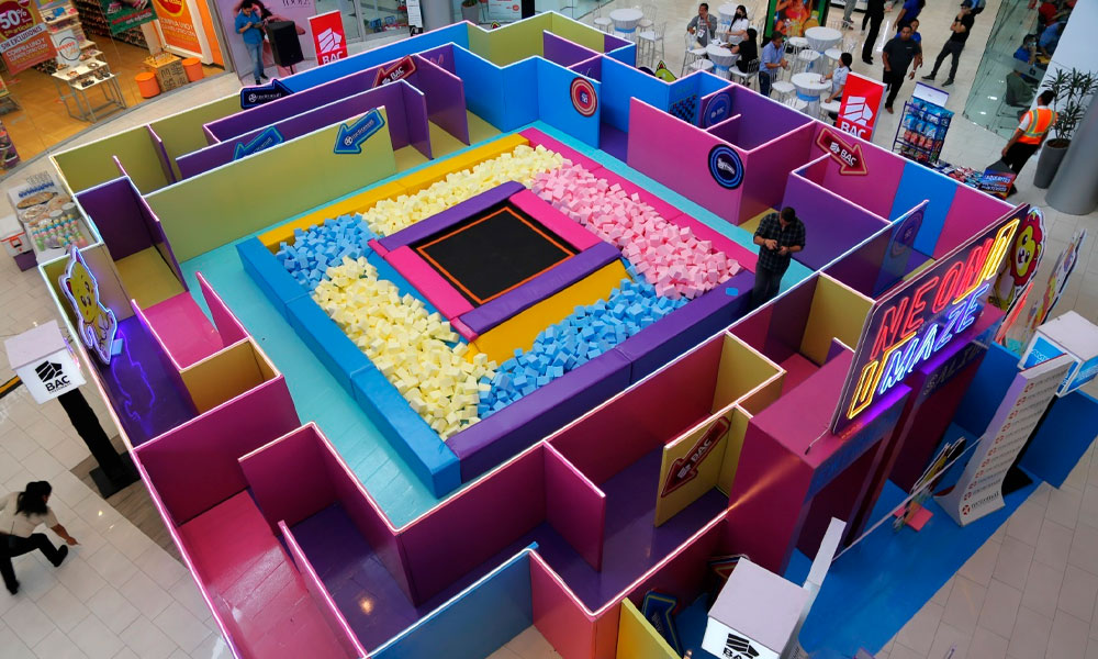 Ahora las familias podrán gozar junto a sus seres queridos de espacios llenos de color, y podrán recorrer el único laberinto al estilo neon en la ciudad, asimismo los pasillos ofrecerán juegos únicos y una piscina llena de esponjas para que los pequeños pasen un momento agradable. Neon Maze estará abierto al público a partir del 30 de marzo de lunes a domingo en horario de 11:00 a.m. a 7:00 p.m. con un precio costo de L80.00 y descuentos especiales al pagar con tarjetas de BAC CREDOMATIC.