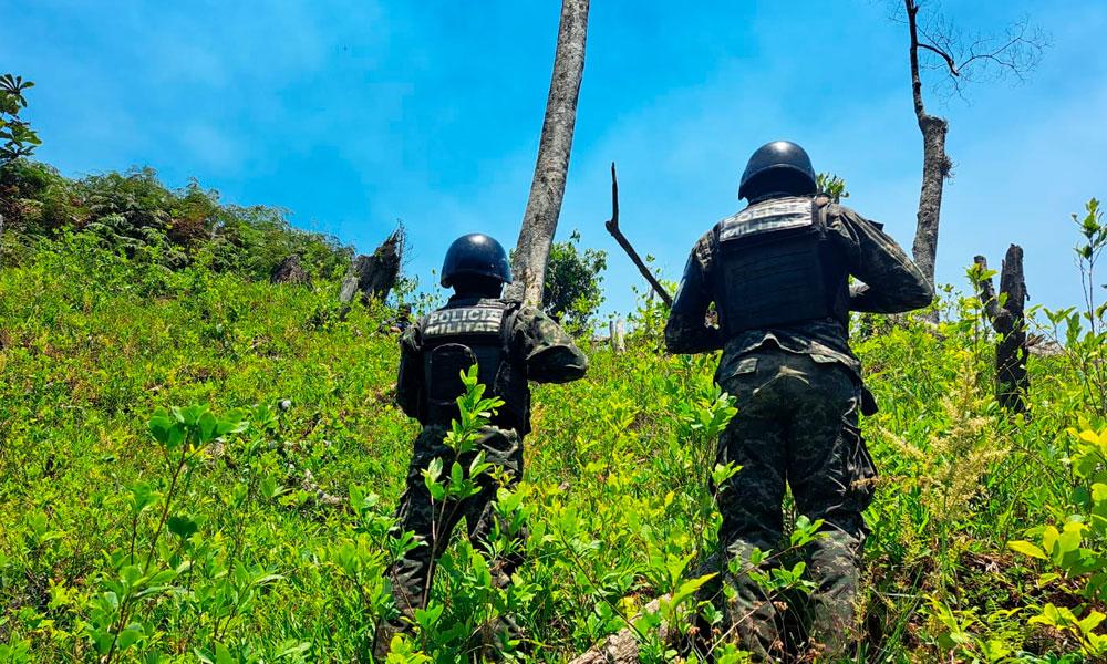 Las Fuerzas Armadas de Honduras (FFAA), a través de la Policía Militar del Orden Público (PMOP), localizó y aseguró una plantación de arbustos de supuesta hoja de coca, entre el Parque Nacional de Pico Bonito y el refugio de vida silvestre Texiguat al sur del municipio de La Masica, departamento de Atlántida.