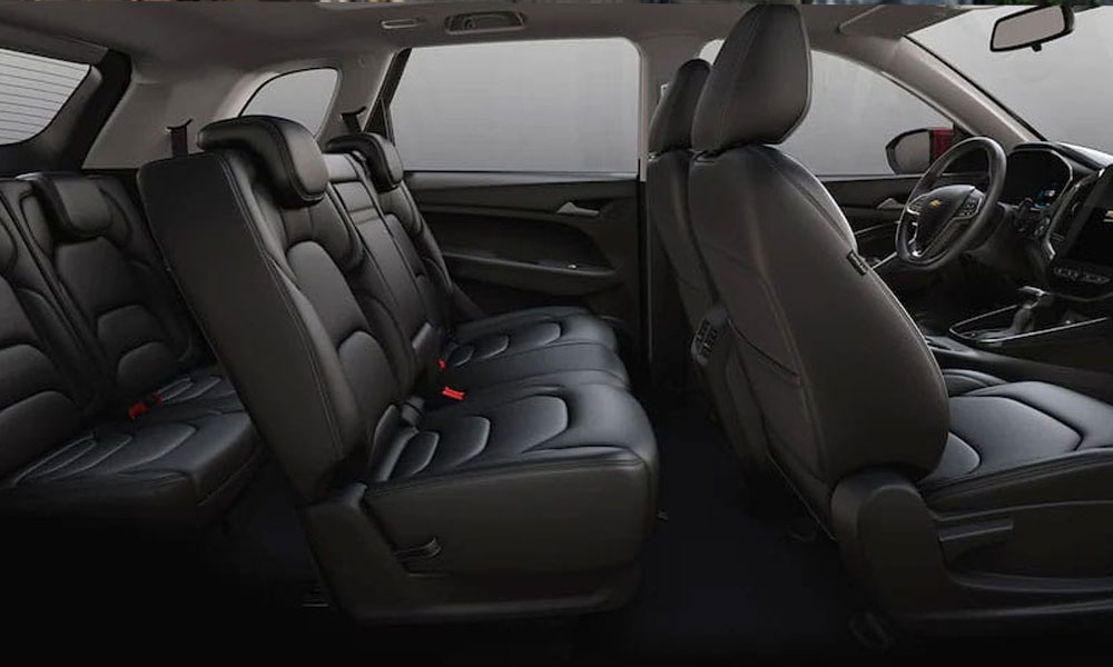 Sus asientos están tapizados en cuero para brindar mayor confort, pantalla de instrumentos de 3.5”, asiento del conductor con ajuste eléctrico de 6 posiciones, asientos forrados en cuero, segunda fila de asientos abatibles 60/40, tercera fila de asientos abatibles 50/50, nivelador de altura de faros frontales y puertos USB (Dos en las filas 1 y 2, y uno para la tercera fila).