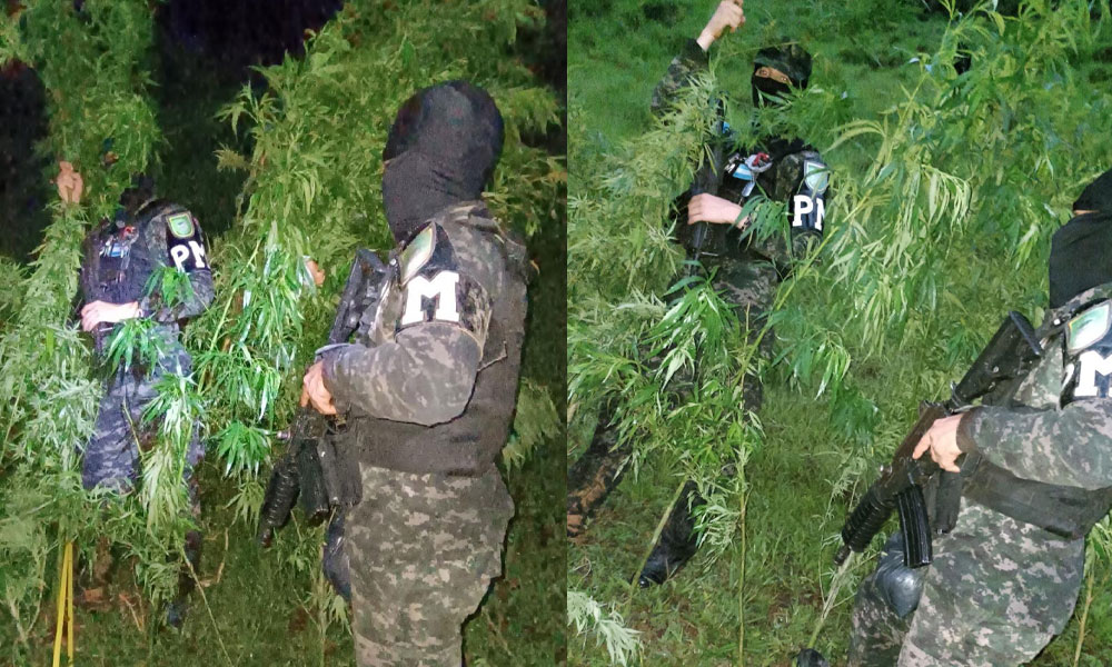 La operación antinarcóticos se ejecutada a través de la Policía Militar del Orden Publico en el sector de la Aldea Pimienta, Olanchito, departamento de Yoro.