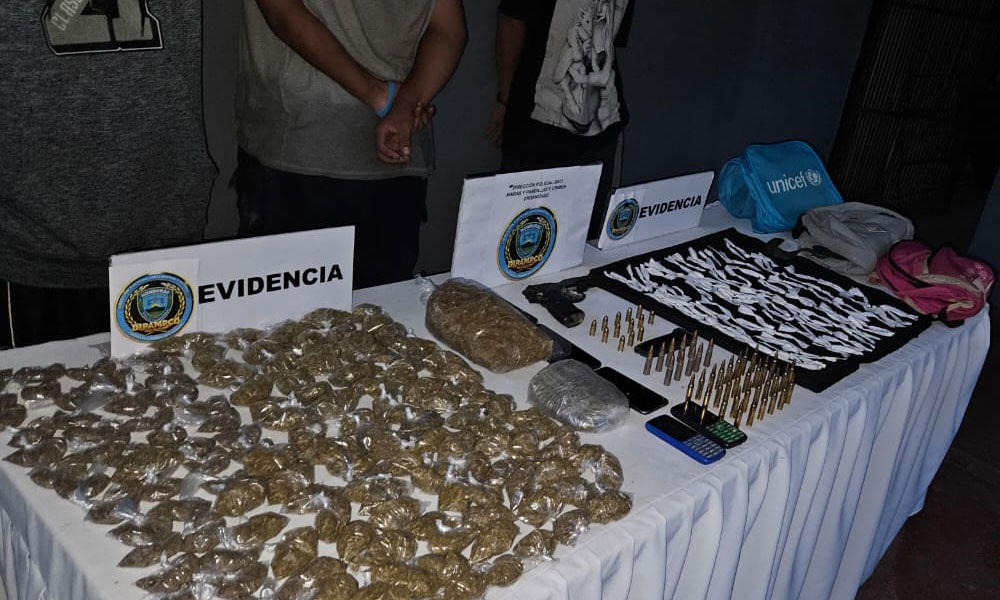 Los funcionarios policiales han logrado decomisar un arma de fuego, 144 marihuana, 122 puntas de cocaína, munición de uso prohibido, 5 teléfonos celulares y tres mochilas.