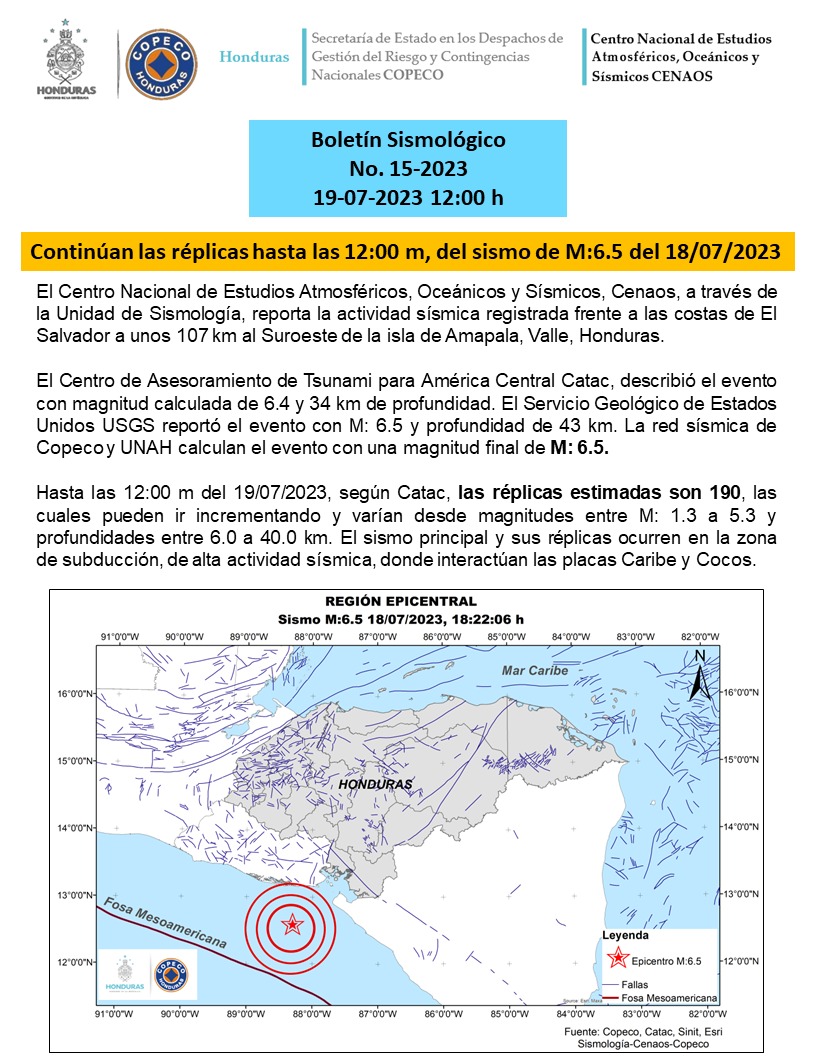 En Honduras al menos 190 réplicas se han registrado hasta el momento tras el terremoto de magnitud 6,5 en la escala de Richter se registró la noche del martes en la costa del Pacífico, en el golfo de Fonseca.