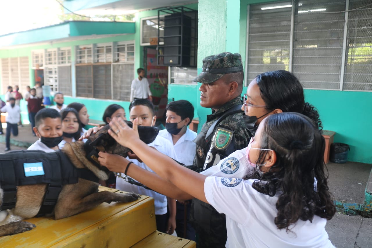 Como parte de su proyección social, Fuerzas Armadas (FFAA) a través del Primer Batallón Canino de la Policía Militar del Orden Público (PMOP) realizó una presentación canina en el Centro de Educación Básica Cerró Grande zona 2 de Comayagüela.