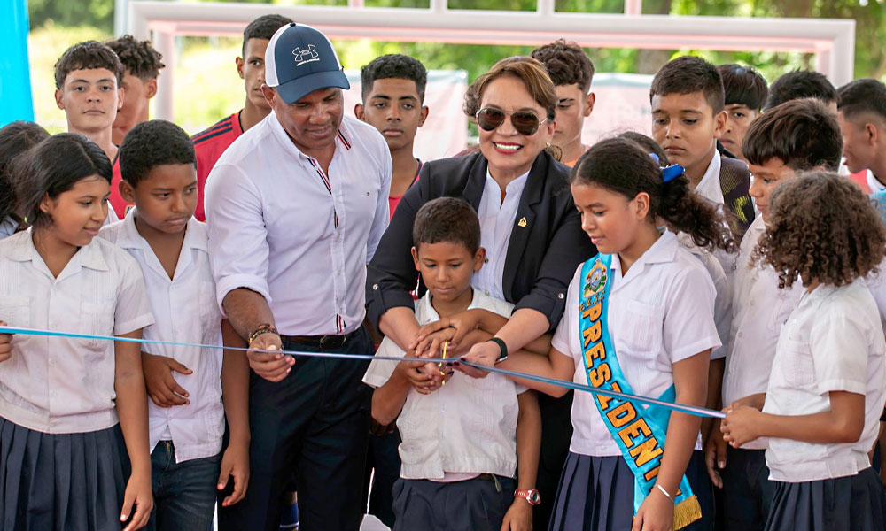 La presidenta Xiomara Castro inauguró en Juticalpa, Olancho, otra cancha de usos múltiples con la cual el gobierno acumula 33 espacios deportivos modernizados a nivel nacional que benefician a la niñez, jóvenes y adultos quienes practicarán deportes en instalaciones dignas.