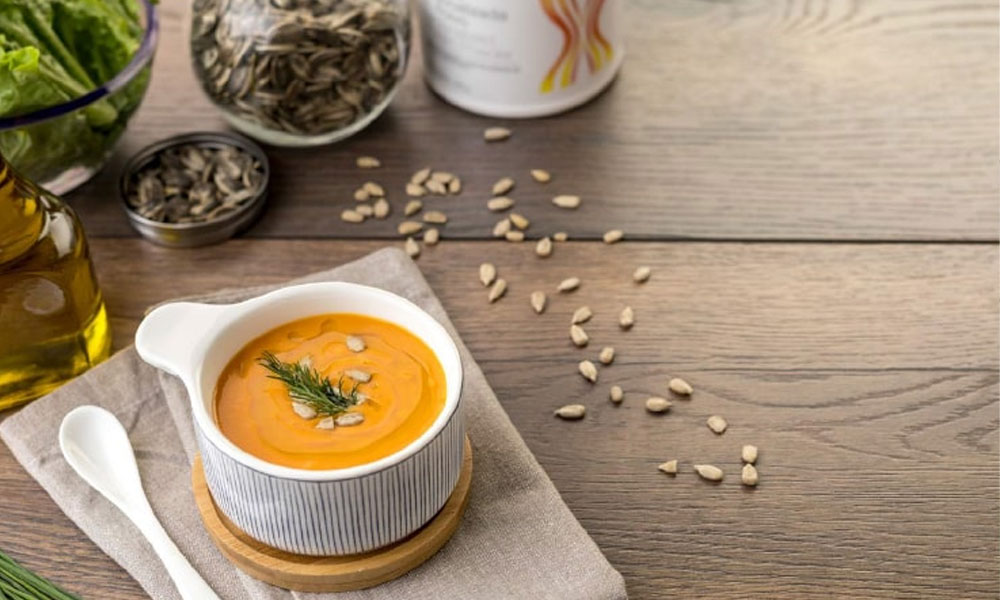 5. Sé inteligente con los condimentos. Duplica la receta para platos como sopas y. De esa manera, cuando estés cansado y no quieras cocinar, puede sacar algo saludable del congelador en lugar de pasar por comida rápida.