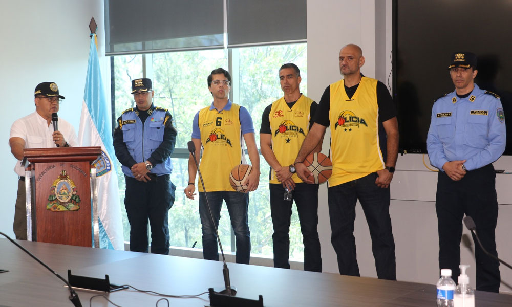 La conferencia se efectuó en las instalaciones de la Secretaría de Seguridad, en la aldea El Ocotal, Francisco Morazán y se presentó a algunos integrantes del equipo de baloncesto de la Policía Nacional que jugarán con las legendarias estrellas.