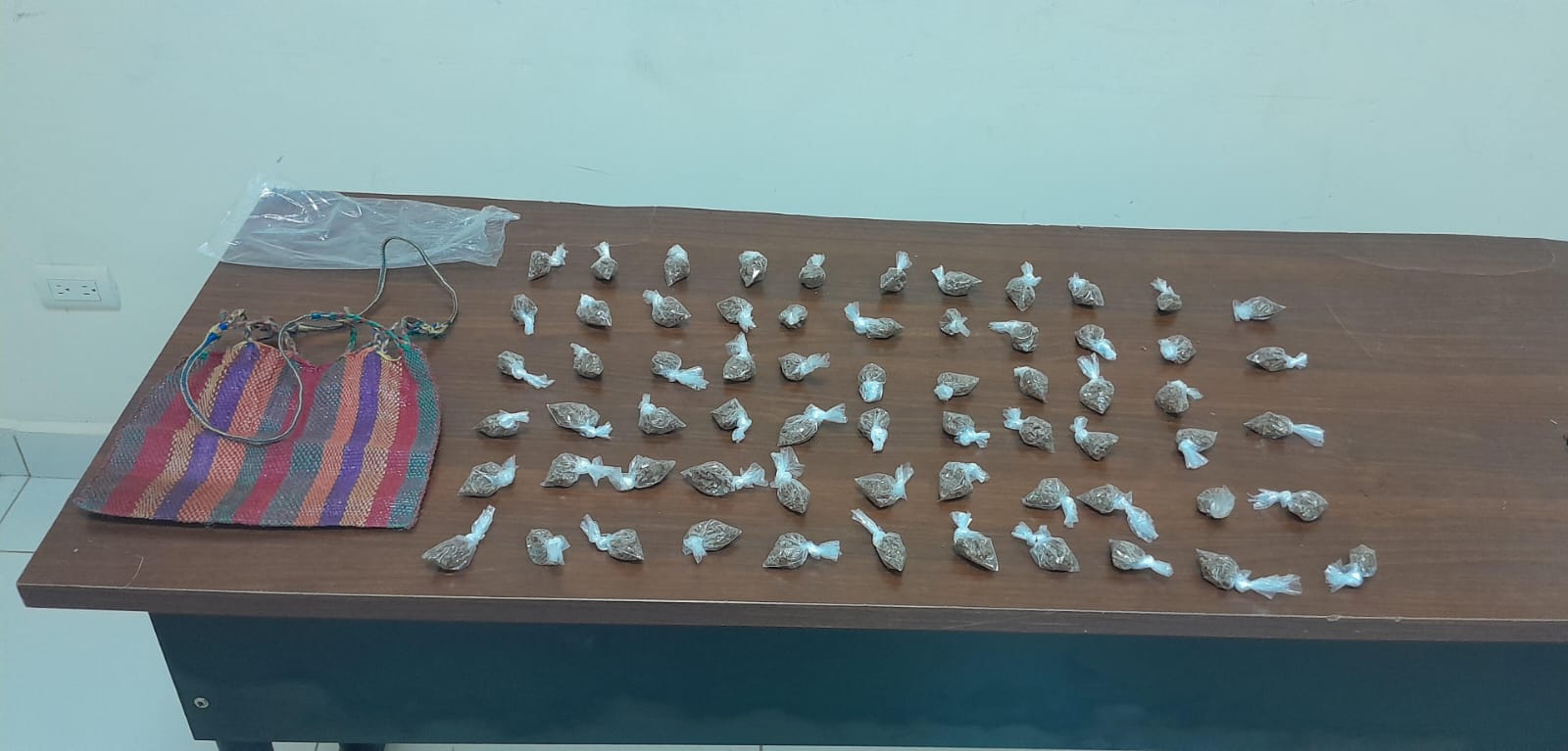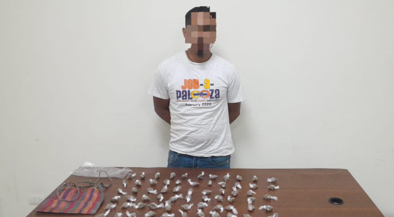 La persona captura es un albañil de 36 años originario y residente del barrio Suampo, Roatán, Islas de la Bahía, el cual se le encontró en poder de una bolsa de nailon multi color conteniendo una bolsa plástica transparente misma que contiene 65 bolsas con hierba seca supuesta marihuana.