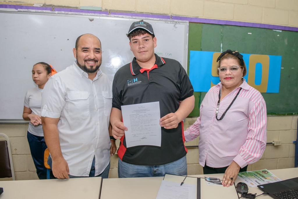 asignación de una beca educativa completa al estudiante del Instituto Mixto Hibueras, en Comayagüela, Mario Fernando Núñez Cabrera.