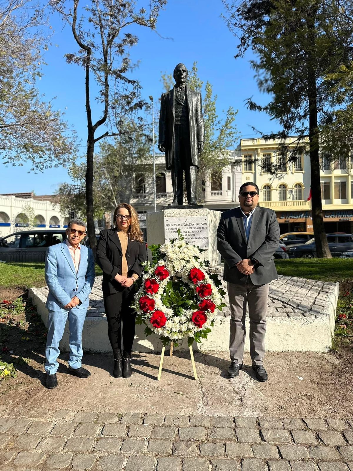 El Ministro de SEDESOL José Carlos Cardona, ha entregado por orden de la presidenta Xiomara Castro De Zelaya junto a la Embajadora de Honduras en Chile, Linda Redondo, en el marco del natalicio del máximo héroe hondureño y centroamericano Francisco Morazán, una ofrenda floral al paladín y forjador del centroamericanismo.