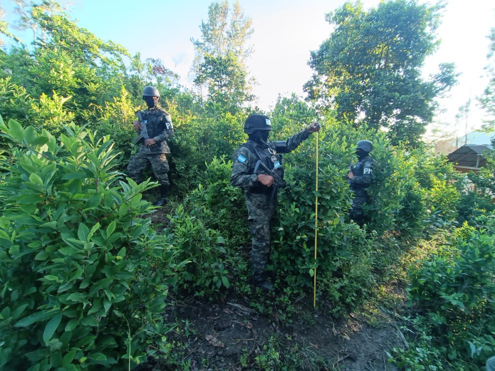 Las FFAA. a través de la Policía Militar del Orden Público en el marco de la Operación Plan Nacional de Seguridad Solución Contra El Crimen Organizado identificaron y aseguraron una plantación de estupefacientes en la comunidad de Plan Grande del municipio de Yaruca Atlántida, reserva de Pico Bonito, frontera con el departamento de Yoro.