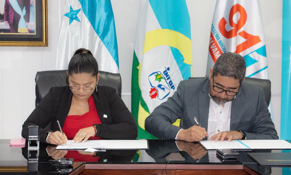 La firma de este documento será realizada por el Director Ejecutivo de INFOP Carlos Suazo y la Comisionada Presidenta de la Comisión Interventora del SNE 911, Miroslava Cerpas Hernández.