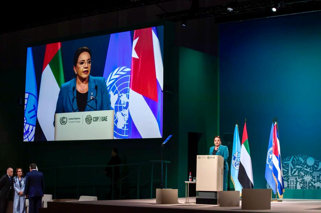 La presidenta Xiomara Castro culminó su participación en la Conferencia de las Naciones Unidas sobre el Cambio Climático (COP 28), que se celebra en Dubái, con una reunión con la Coalición de Naciones con Bosques Tropicales y otra con el G77 más China.