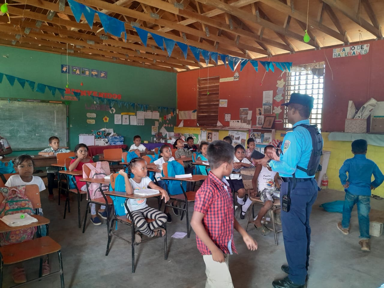 En el marco del fortalecimiento institucional, los funcionarios policiales asignados en el histórico departamento de Gracias a Dios, realizan una serie de capacitaciones de previsión de maras, pandillas, bullying y acoso cibernético, siendo impartida a los niños adolescentes y adultos.