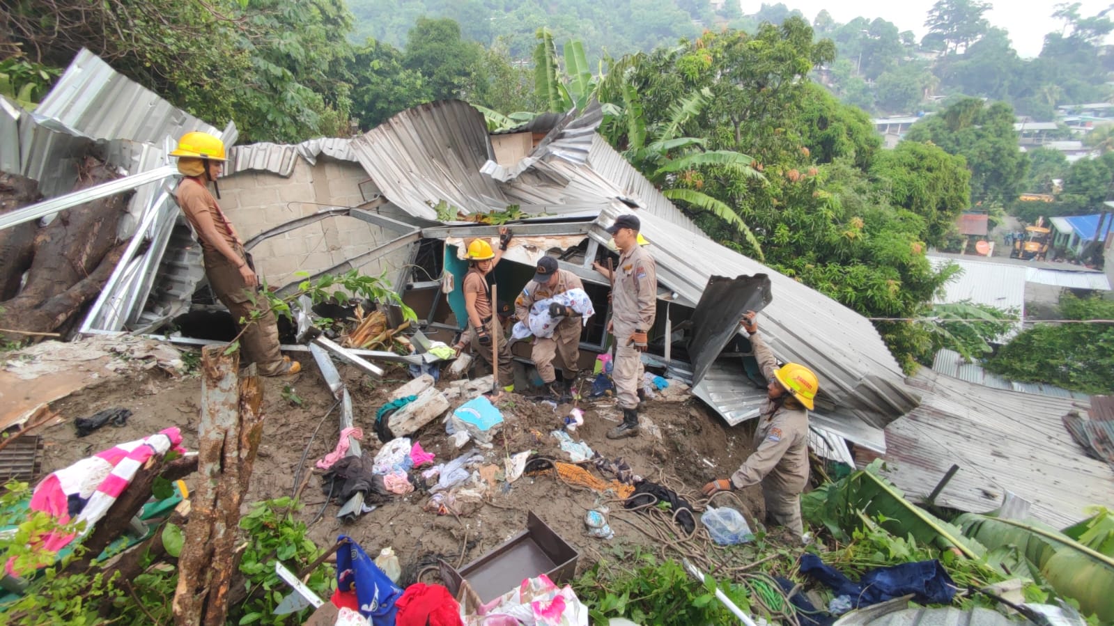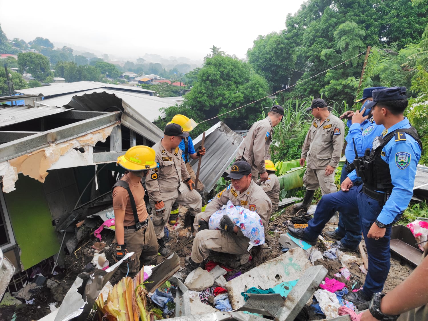 El Cuerpo de Bomberos de Honduras, continúa trabajando incansablemente en medio de las condiciones climáticas adversas, para encontrar el cuerpo de una segunda persona que está soterrada.