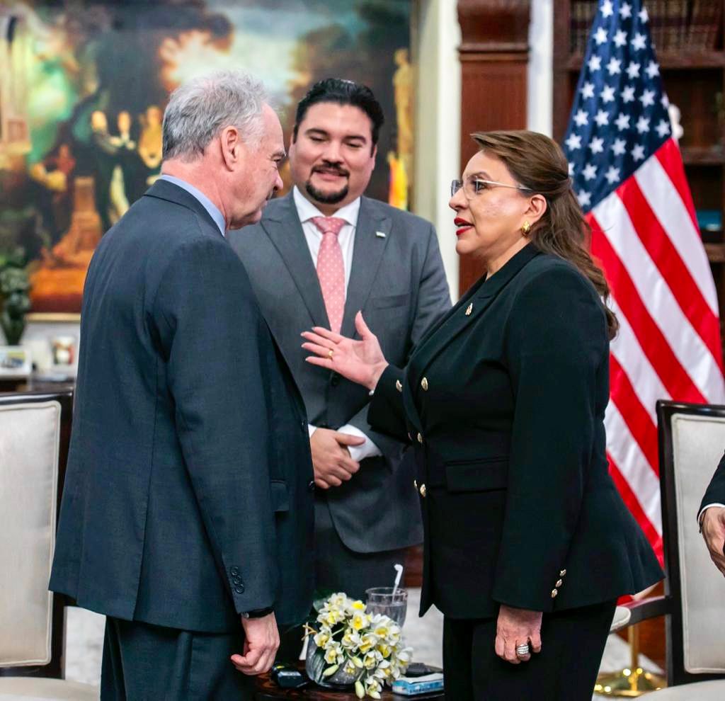 La Presidenta Xiomara Castro y su gabinete de Gobierno recibieron el domingo 10 de diciembre de 2023 a una delegación de Senadores y Congresistas de los Estados Unidos, encabezada por el Senador Tim Kaine, junto al Senador Jeff Merkley, Senador Peter Welch, Senador Dick Durbin, Senadora Laphonza Butler y la Congresista Delia Ramírez.