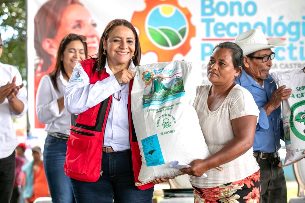 Por su parte, la productora de granos básicos y beneficiada del bono tecnológico, Inginia Alejandra Juárez, expresó que “agradecemos a Dios y al gobierno de la presidenta Castro por estas semillas mejoradas y fertilizantes que van a contribuir a la producción de alimentos en nuestros hogares y comercializar el excedente en las comunidades”.