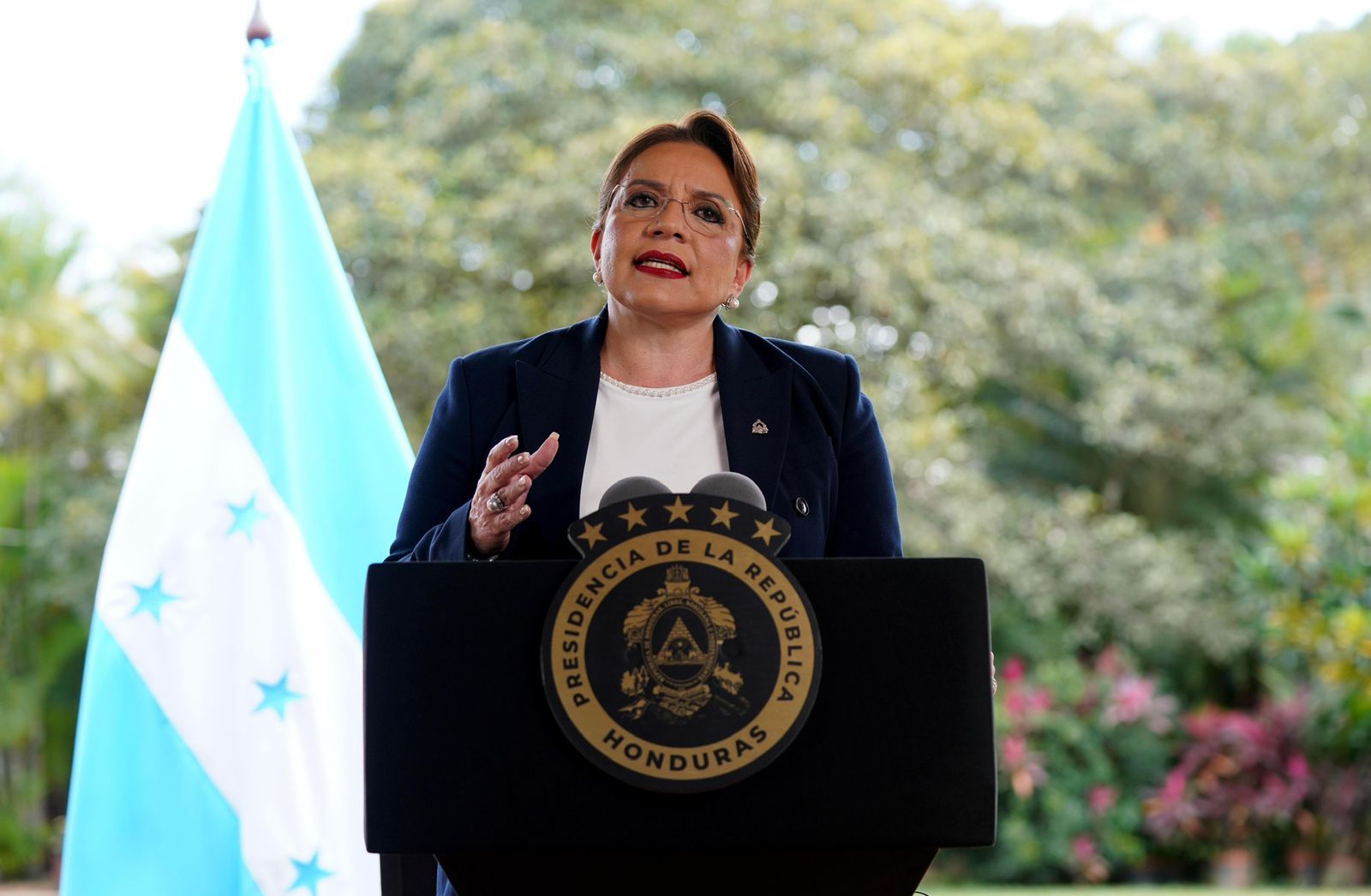 Castro afirmó que «no ha sido nada fácil» para su Administración «construir sobre los destrozos dejados tras doce años y siete meses de dictadura y narcotráfico», en alusión a los Gobiernos que presidieron Porfirio Lobo (2010-2014) y Juan Orlando Hernández (2014-2022), del ahora opositor Partido Nacional.