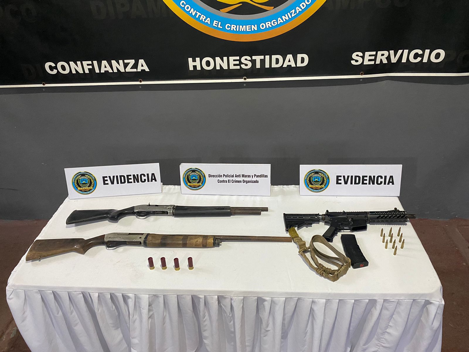 Entre las armas decomisadas figura un fusil AR-15, calibre 5.56, con su respectivo cargador conteniendo en su interior 10 proyectiles. Mientras de uso permitido fueron decomisadas dos escopetas y varios proyectiles.