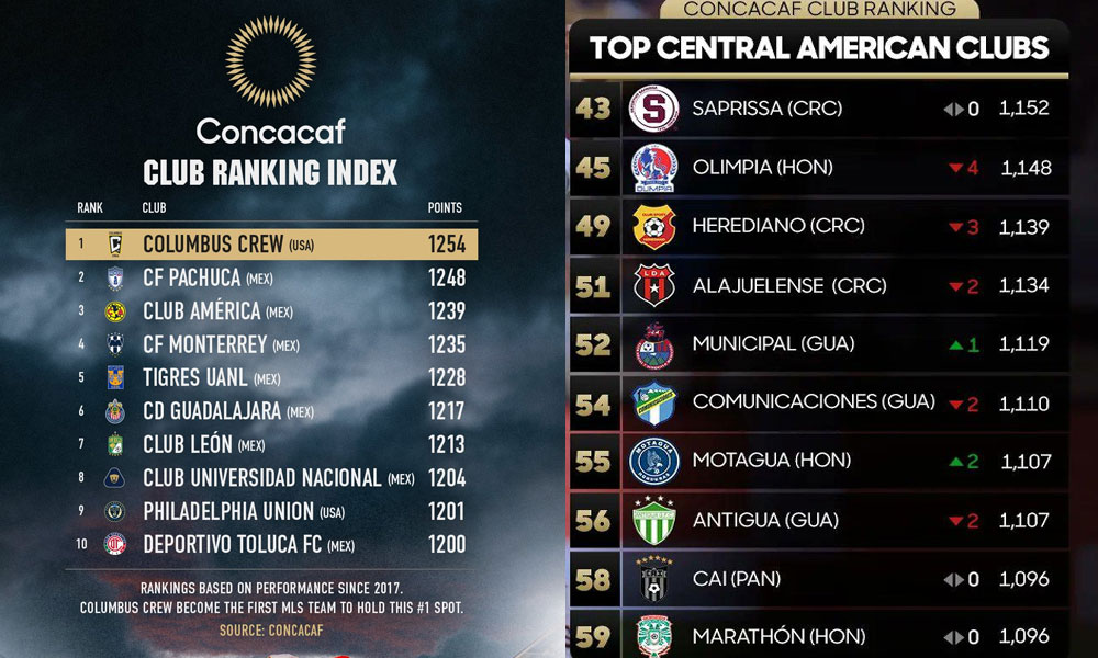 A nivel general el ranking de Concacaf tuvo una modificación en la cima, el Columbus Crew de la