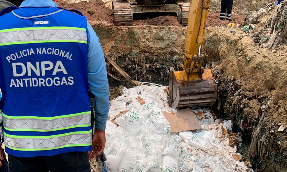 La destrucción de dicho cargamento se realizó con maquinaria en el Relleno Sanitario de Puerto Cortés y previamente se realizó el respectivo conteo del cargamento en la Operadora Portuaria Centroamericana (OPC).