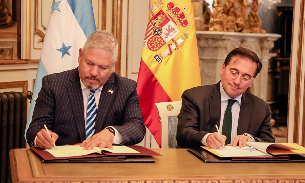 En un hecho histórico para la comunidad hondureña que reside en España, el Canciller Eduardo Enrique Reina y su homólogo de España, José Manuel Albares Bueno, firmaron el Acuerdo de Reconocimiento Recíproco y el Canje de los Permisos de Conducción Nacionales.