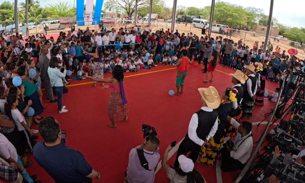 La presidenta de Honduras, Xiomara Castro, inauguró hoy en el municipio de la Villa de San Antonio, departamento de Comayagua, una cancha de usos múltiples con duela semiprofesional que beneficiará a más de 3 mil 500 jóvenes y niños del sector.