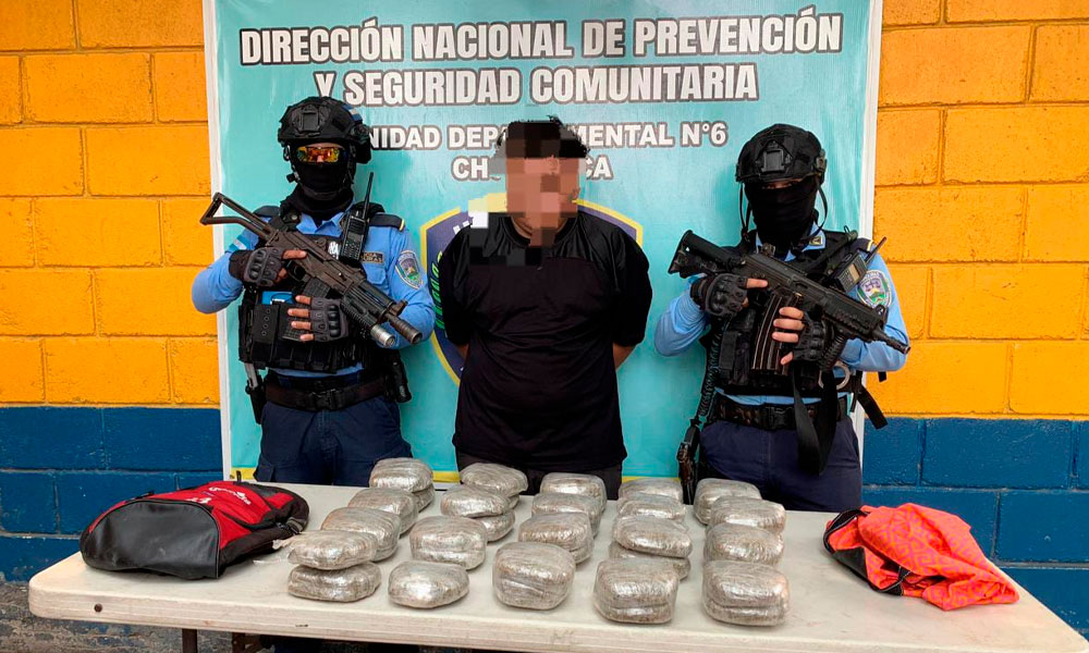 Dicho detenido tiene 24 años, es originario y residente en El Triunfo, Choluteca, a quien se le hizo saber sus derechos y que enfrentará cargos por el delito de tráfico de drogas.