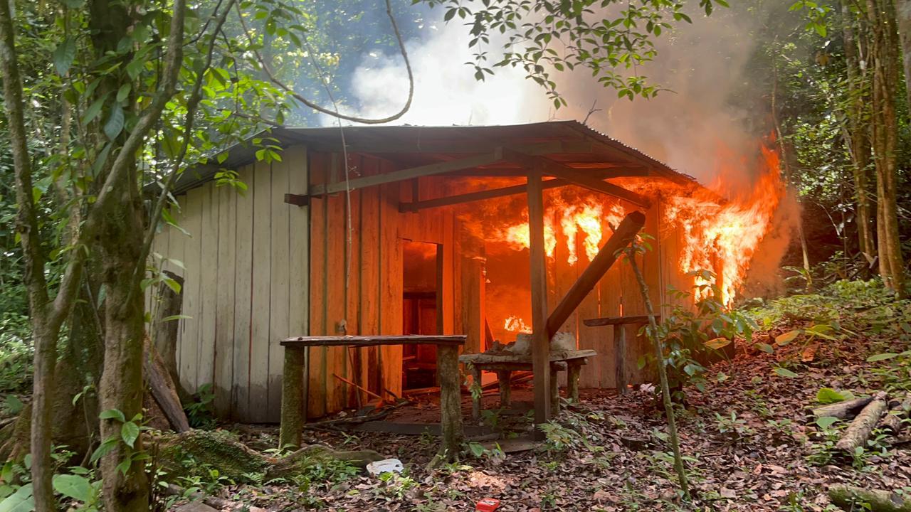 De igual forma se ejecutó la destrucción de una estructura rústica de madera, con una área de construcción aproximada de 25 metros cuadrados, la cual era utilizada como almacén de insumos químicos para dar mantenimiento al cultivo ilícito y para el procesamiento y extracción de pasta base de coca.