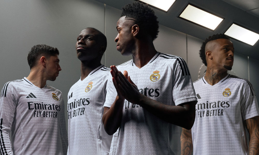 El Real Madrid presentó la camiseta de la temporada 2024-25, con «un diseño minimalista» que incluye un» patrón de pata de gallo personalizado con las iniciales RM».