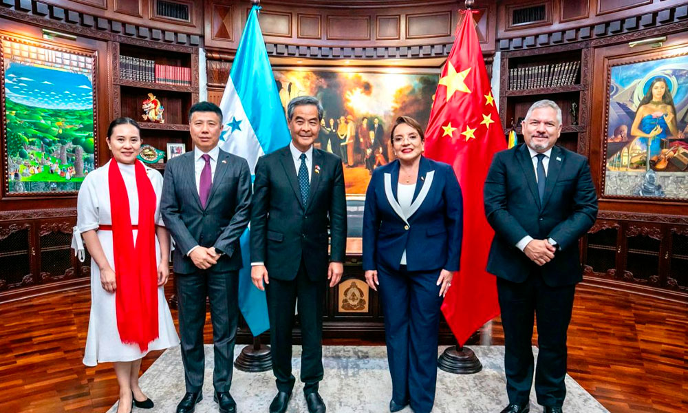 La presidenta de la República, Xiomara Castro, se reunió con el vicepresidente de la Conferencia Consultiva Política del Pueblo Chino y presidente de la Fundación GX, Leung Chun Ying, con quien dialogó sobre temas de salud, educación y otros de interés bilateral.
