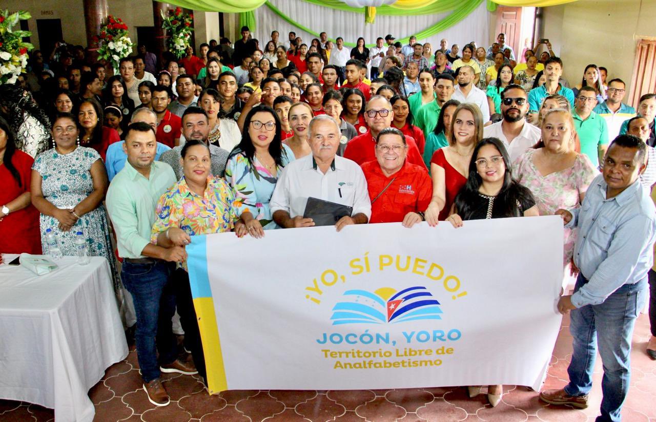 Por su parte el Alcalde de Jocón Yoro, Adrián Bladimiro, manifestó que como alcalde nos sentimos orgullosos, satisfechos, ya que este día el municipio de Jocón esté celebrando ser libre de analfabetismo y que bueno porque la educación es fundamental, para que nuestros pueblos y nuestro país podamos salir adelante.