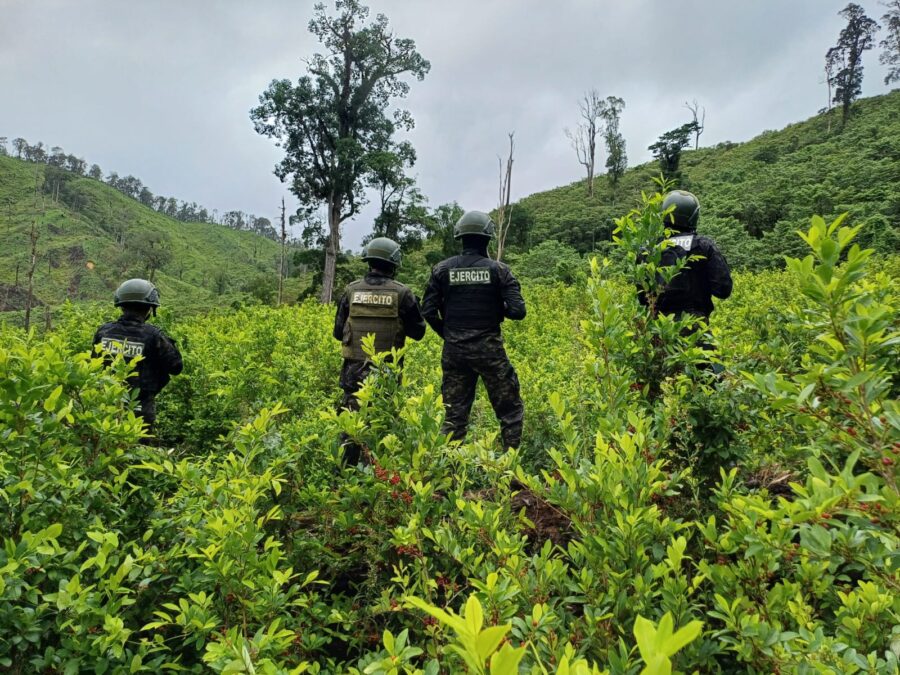 Las Fuerzas Armadas de Honduras a través de 15 Batallón de Fuerzas Especiales realizaron una operación de reconocimiento y localización de dos plantaciones de arbustos de hoja de coca, en el sector del Parque Nacional de Sierra de Río Tinto, Iriona, Colón.