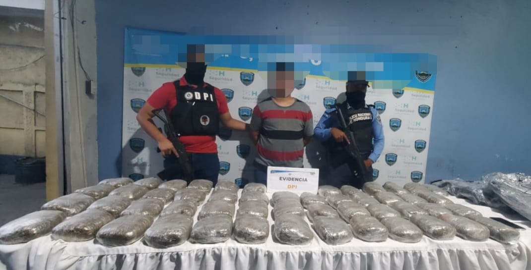 Al momento de su arrestó se le decomisó como medios constitutivo de delito, 51 paquetes envueltos en plástico transparente conteniendo un aproximado de 60 libras de supuesta marihuana, valorada en un total de 100 mil lempiras.