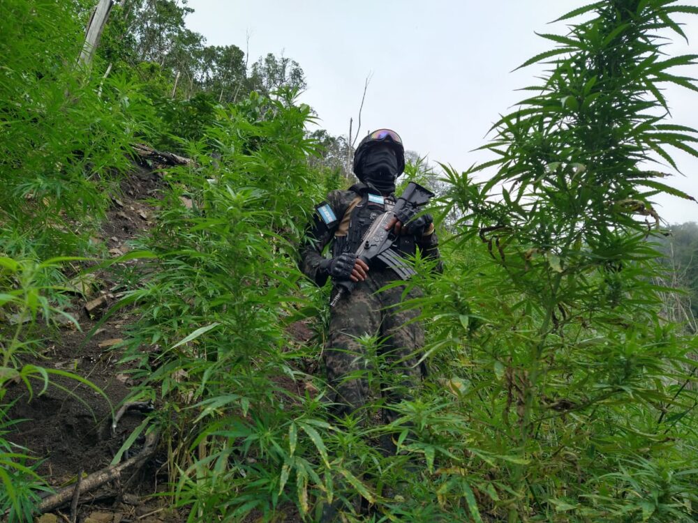 Las Fuerzas Armadas a través de equipos de operaciones especiales y unidades de inteligencia de la Policía Militar, en coordinación con el Ministerio Público en las ultimas horas localizó y aseguró cuatro plantaciones de marihuana, con una extensión de diez manzanas de tierra contabilizando 60 mil plantas del alucinógeno