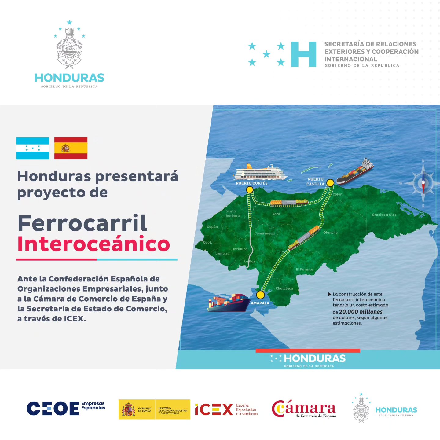 Honduras presentará proyecto del Ferrocarril Interoceánico en encuentro Empresarial en España