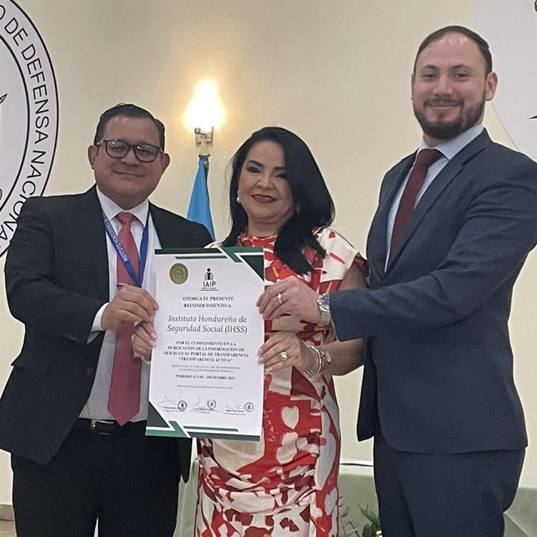 El IHSS recibe nuevamente un reconocimiento por parte del Instituto de Acceso a la Información Pública (IAIP) al cumplir con la calificación requerida del 100 % en el Portal Único de Transparencia.