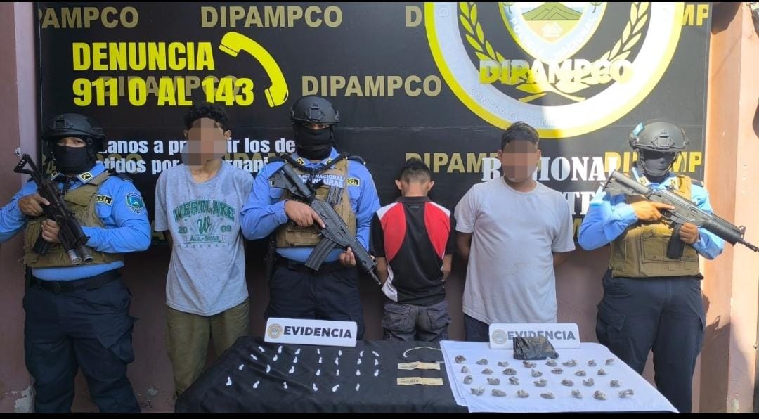Las acciones se reportan en el barrio Las Colinas de la ciudad de Choluteca. Entre los sospechosos se destaca la detención de alias «Alex» de 19 años, «Lalo» de 20, y la aprehensión de un menor de 16 años, a los que se les decomisó varios indicios probatorios.