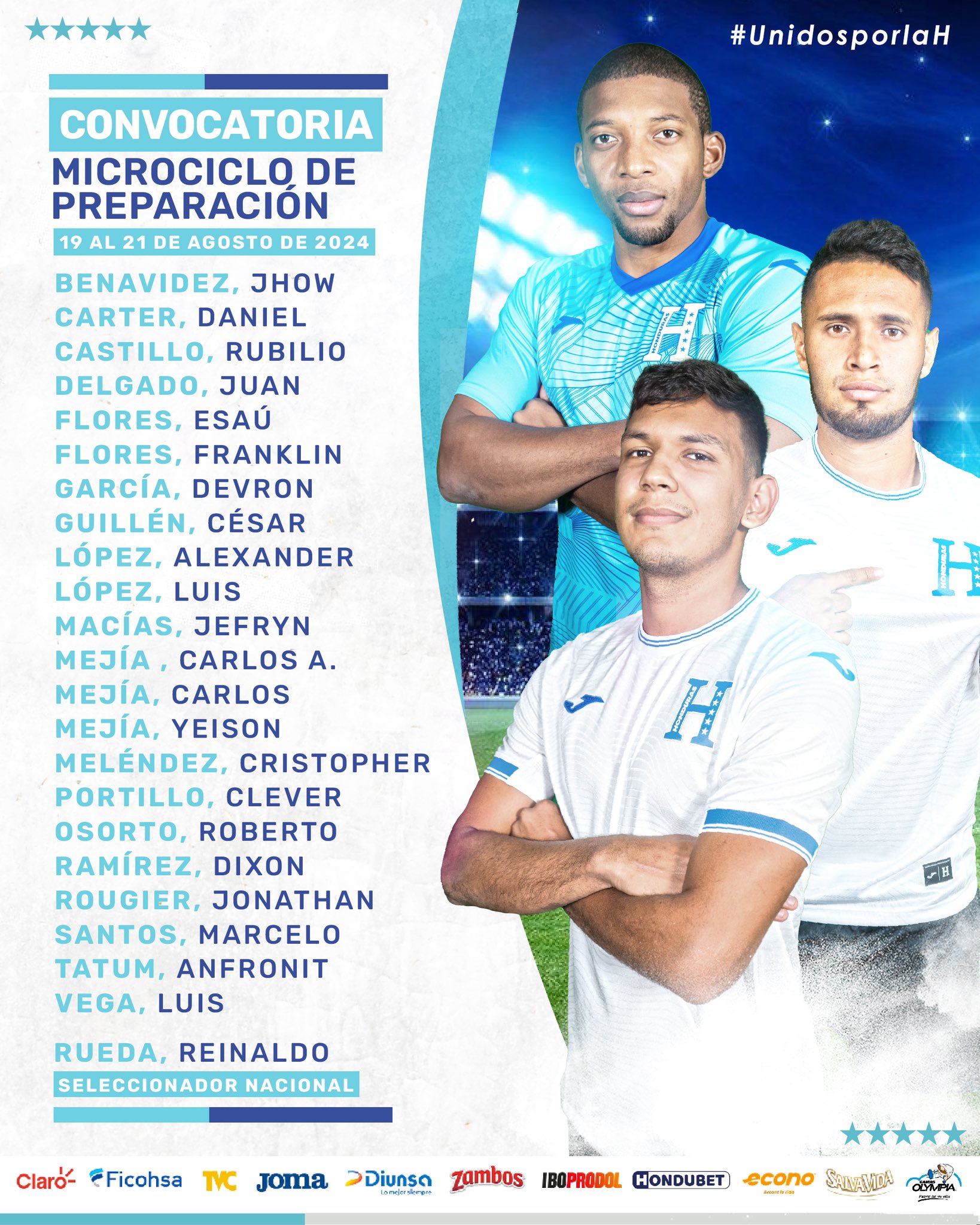 Las novedades en los elegidos por el colombiano son los futbolistas de Motagua, Jonathan Rougier, Luis Vega, Marcelo Santos, Clever Portillo Yeison Mejía, Carlos Mejía, Cristhopher Meléndez y Rubilio Castillo.
