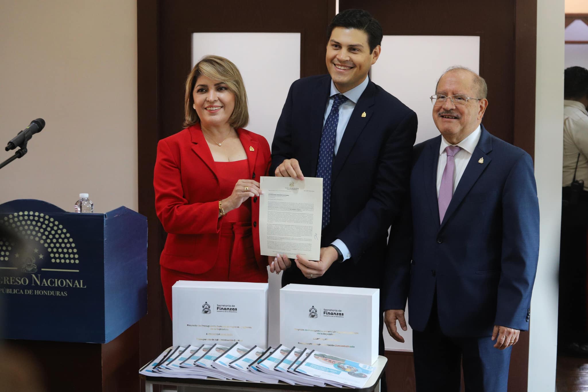El Ministro de Finanzas, Marlon Ochoa, junto con funcionarios de esa Secretaría de Estado, cumpliendo con lo establecido en la Constitución de la República, entregó este martes 10 de septiembre a la Secretaría del Congreso Nacional, en presencia del presidente de este Poder del Estado, Luis Rolando Redondo Guifarro, el anteproyecto de Presupuesto General de la República para el ejercicio fiscal 2025, por un monto de 430,907.8 millones de lempiras.