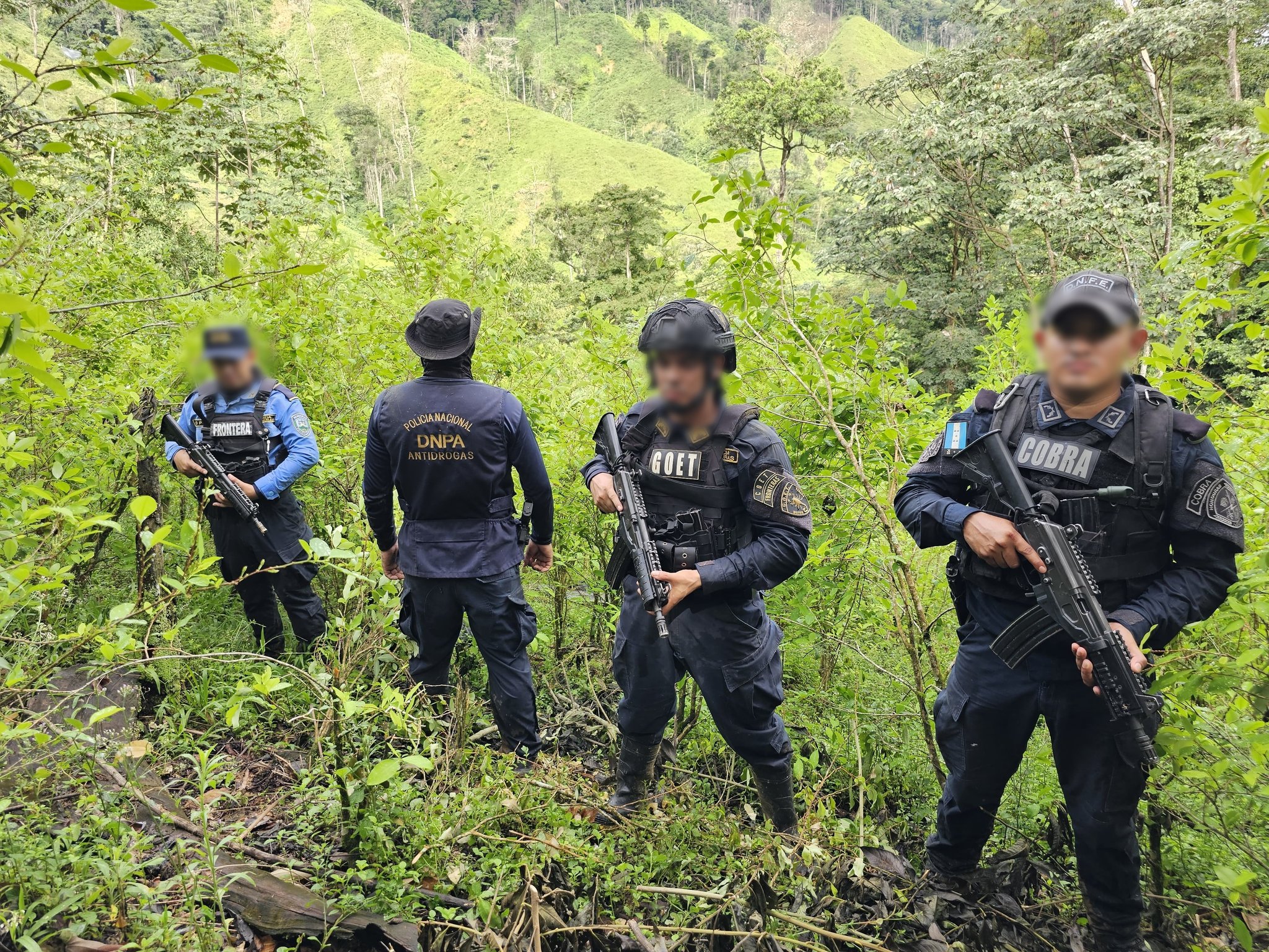 En un operativo exitoso por parte de la Dirección Nacional Policial Antidrogas (DNPA) con apoyo de la Dirección Nacional de Fuerzas Especiales (DNFE), Dirección Nacional de Servicios Policiales Fronterizos (DNSPF-GOET) y elementos de Inteligencia Policial se han ubicado y asegurado dos plantaciones ilegales de arbustos de supuesta coca, abarcando un total de 12 manzanas de terreno y aproximadamente 90,000 arbustos de supuesta hoja de coca. Además, se aseguró un laboratorio rústico dedicado a la producción de pasta base de coca, con la infraestructura y logística necesaria para el procesamiento de estupefacientes.