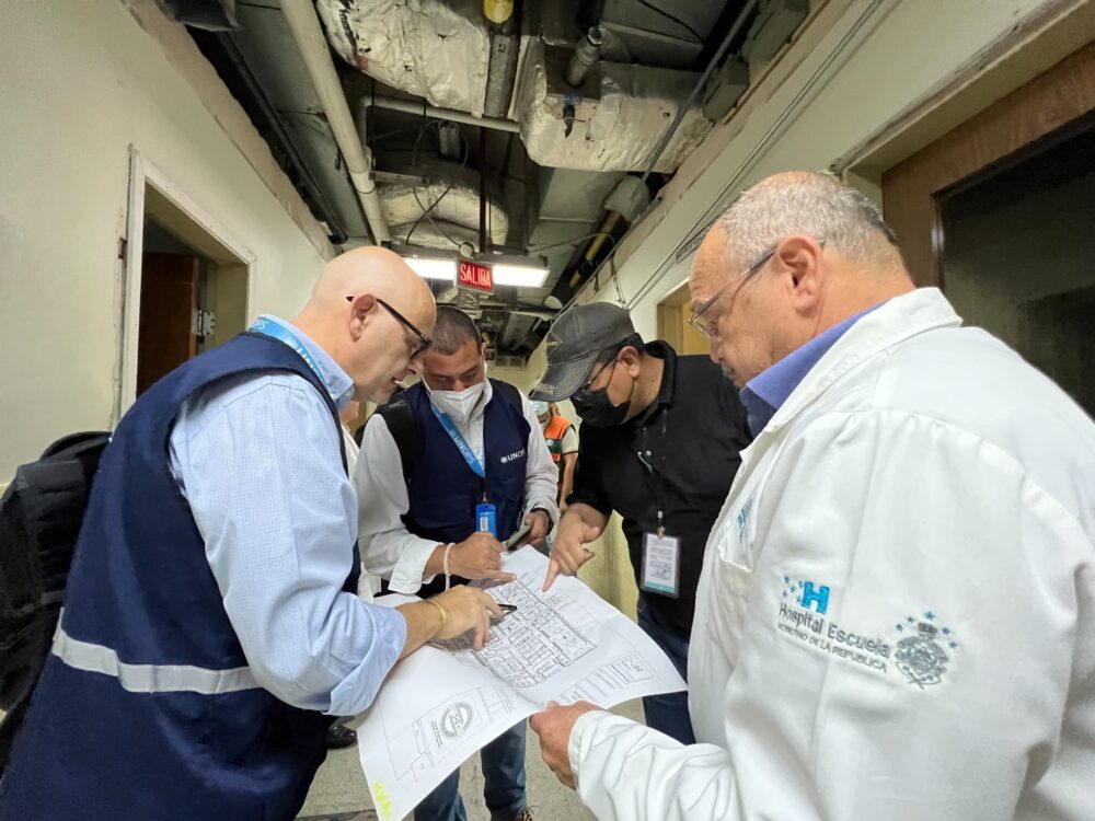 En el proyecto se invertirán unos 300 millones de lempiras, fondos propios del HE. Con el acompañamiento de la unidad de infraestructura del hospital y de Sesal; un equipo técnico UNOPS recorrió recientemente, en una primera visita de diagnóstico, los espacios que serán remodelados.