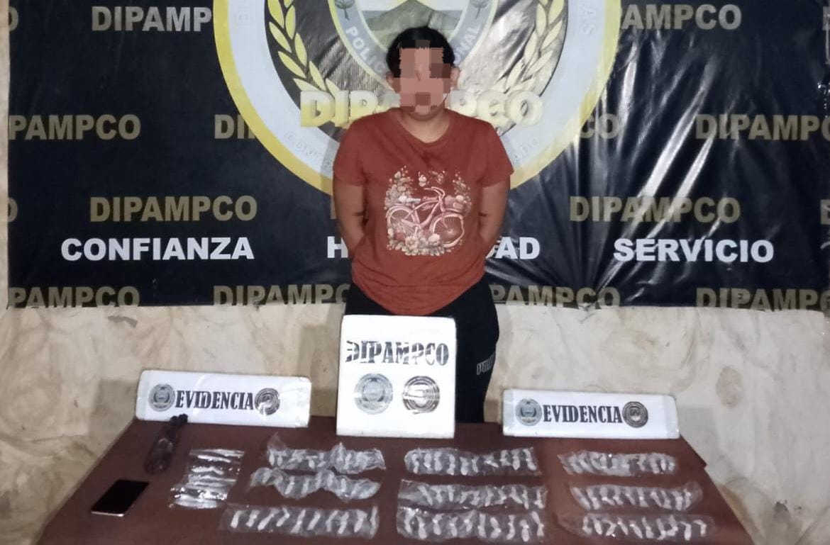 Agentes de la Dirección Policial Anti Maras y Pandillas Contra el Crimen Organizado en coordinación con la Dirección de Inteligencia Policial lograron la captura de una fémina por el delito de tráfico de drogas.