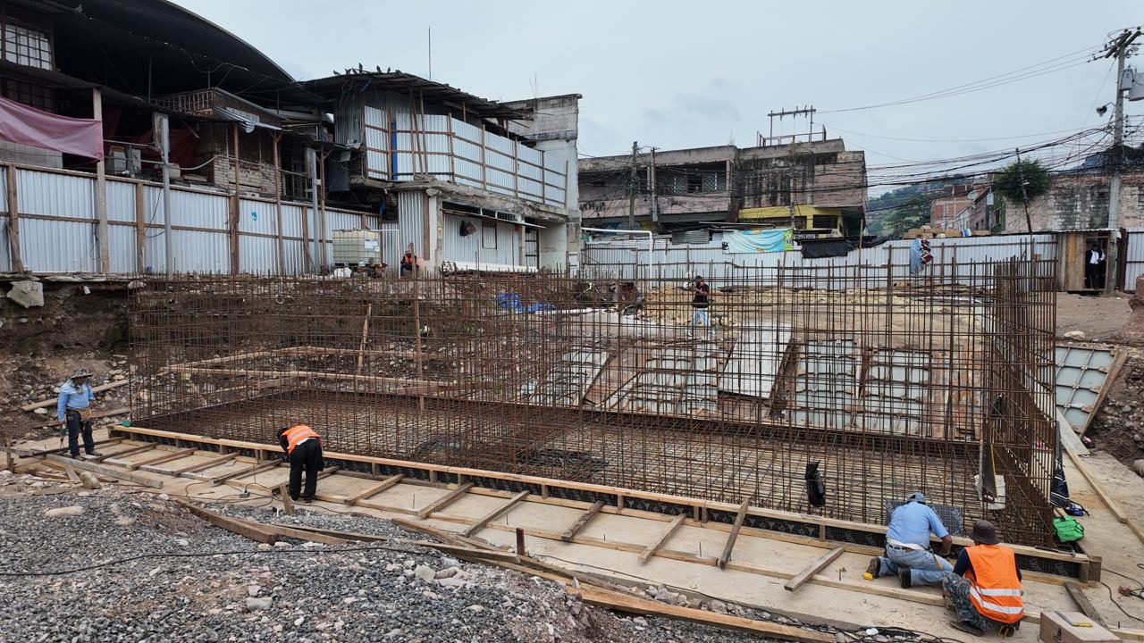 Sobre 100 pilotes de concreto que ya comenzaron a ser armados se sostendrá la estructura del nuevo mercado San Isidro de Comayagüela, el cual avanza en su construcción para convertirse en un moderno centro de abastos popular en la capital.
