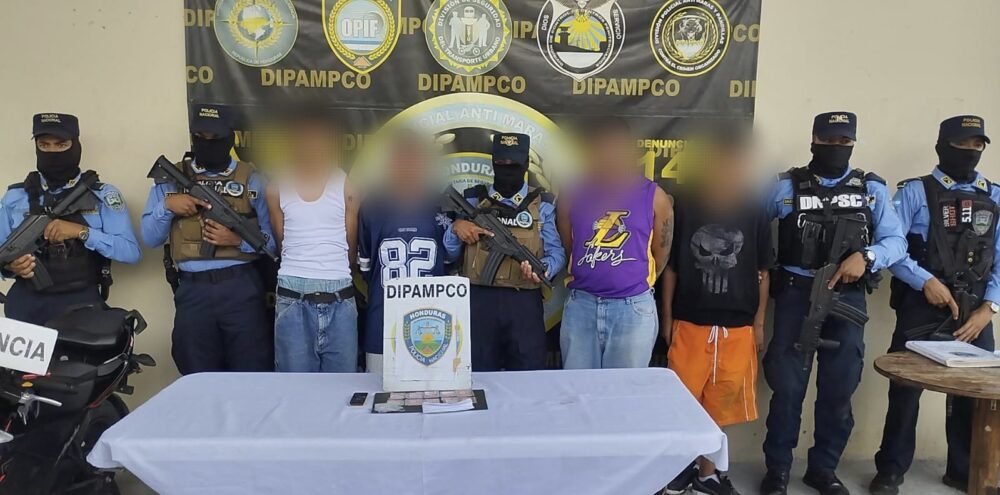 Los detenidos son conocidos por los alias de “El Travieso”, de 46 años, originario y residente de la colonia Villa Nueva de la capital; “Macuelizo”, de 35 años, originario de Tatumbla y residente de la colonia Villa Nueva; y “La Atenta”, una mujer de 23 años, originaria y residente en el sector Mirador de Oriente.