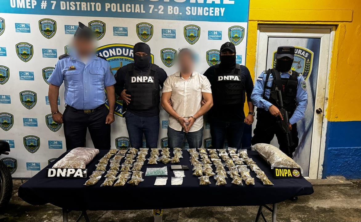En una exitosa operación liderada por la Dirección Nacional Policial Antidrogas (DNPA), con el apoyo de la Unidad Metropolitana de Prevención #7, se logró la captura de un individuo en la colonia Fesitran de San Pedro Sula, en posesión de una considerable cantidad de sustancias ilícitas.