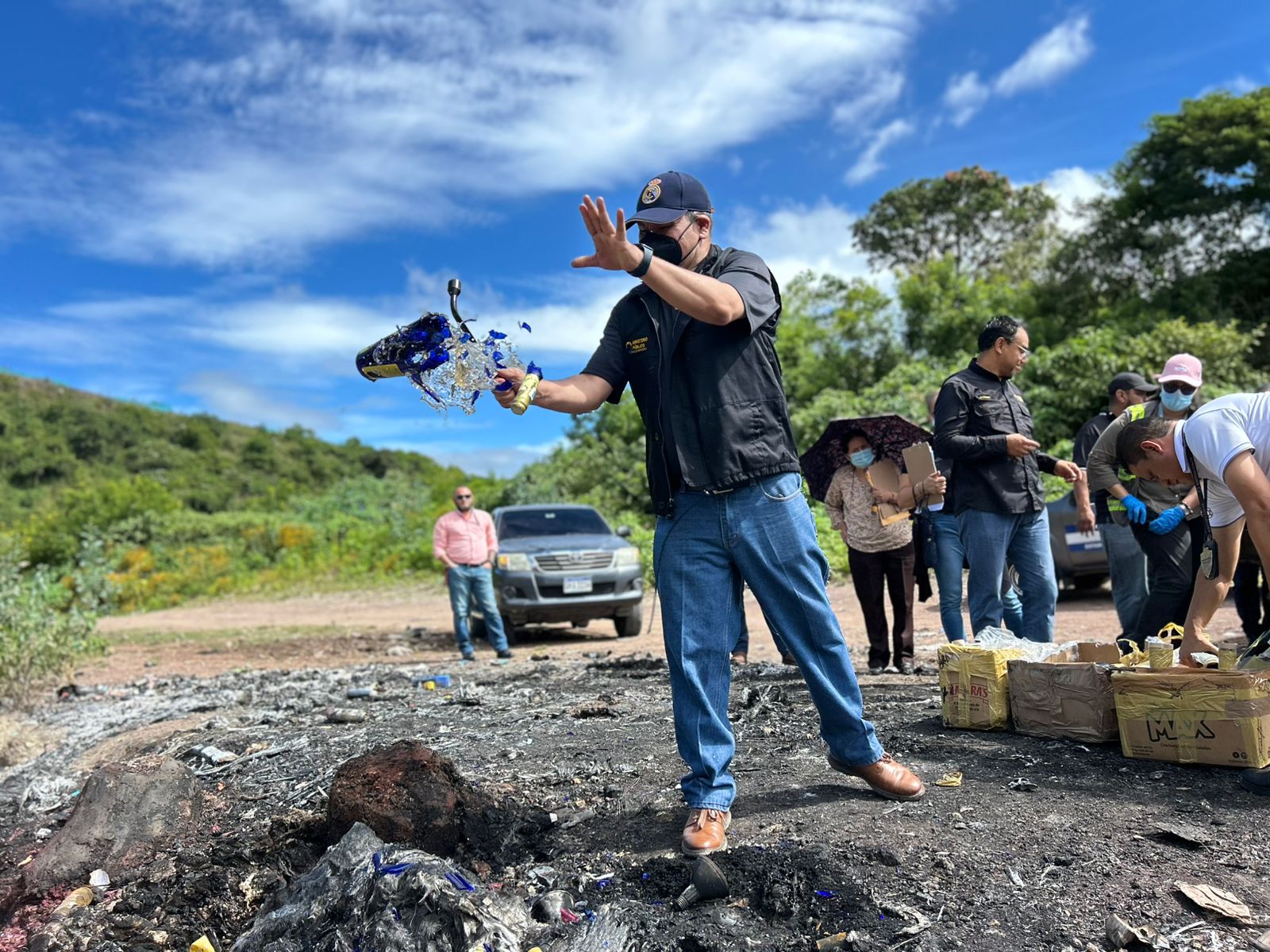 La destrucción de las botellas fue realizada en el Crematorio Municipal, en presencia del Juez Ejecutor, personal de la Agencia de Regulación Sanitaria (ARSA), así como de personal del Laboratorio de Toxicología de Medicina Forense.